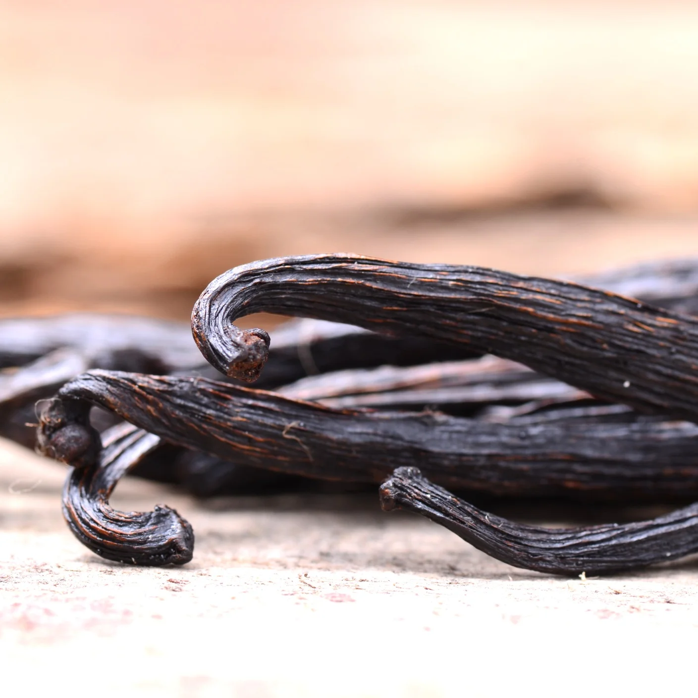 The only fruit of orchids. We use sun dried, whole bean vanilla; never extracts. By using the bean we’re able to keep the delicate & complimentary flavor intact: strongly aromatic with warm, floral notes.